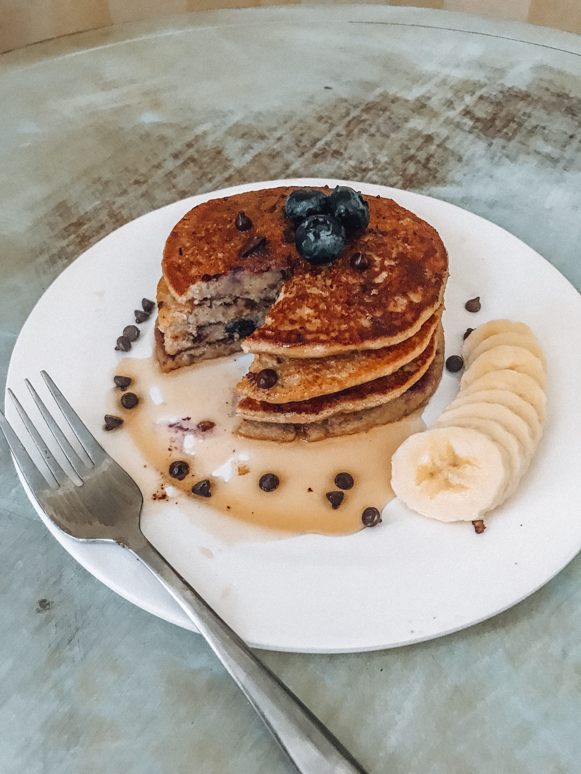 These pancakes have become a weekend go-to in my apartment – not only because they taste like banana bread in pancake form, but they also can be made with just a few simple pantry staples, making them extremely easy to make. And when I say easy, I mean blend, pour, flip, done… seriously, so simple!