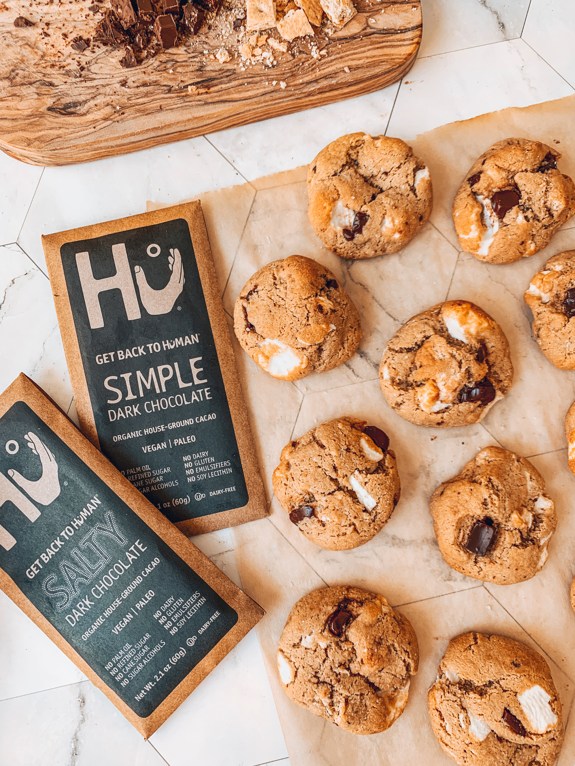 Chocolate Chips: I originally created this recipe when doing an Instagram partnership with Hu Kitchen, so I used their chocolate bars for the chocolate chips, (but you can use whatever you’d like)! Besides Hu, my other go-to baking chocolate is Lily’s Sweets. Since their products don’t have any added sugar, it’s a great way to use just a little bit less sugar in your sweets!