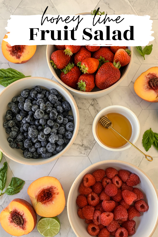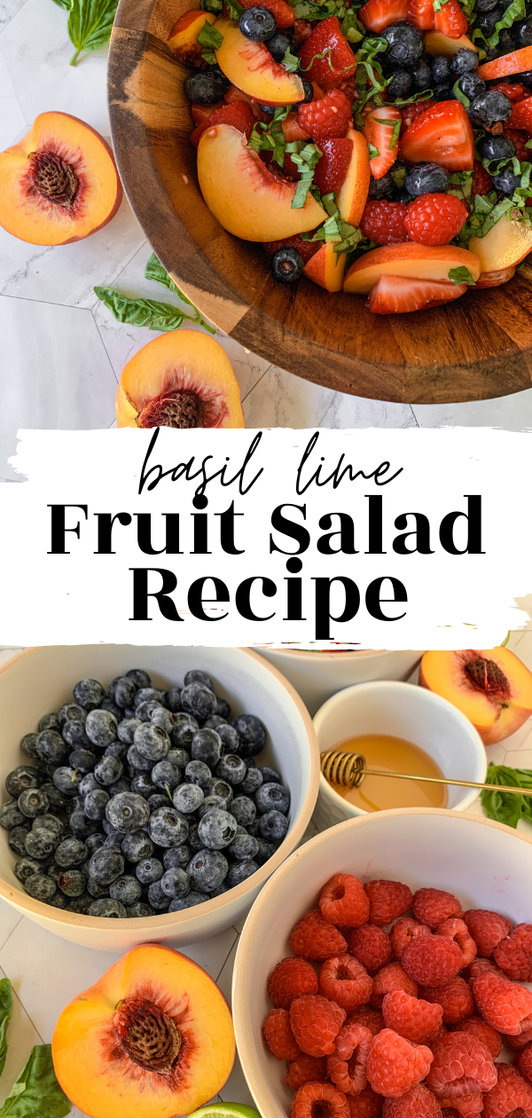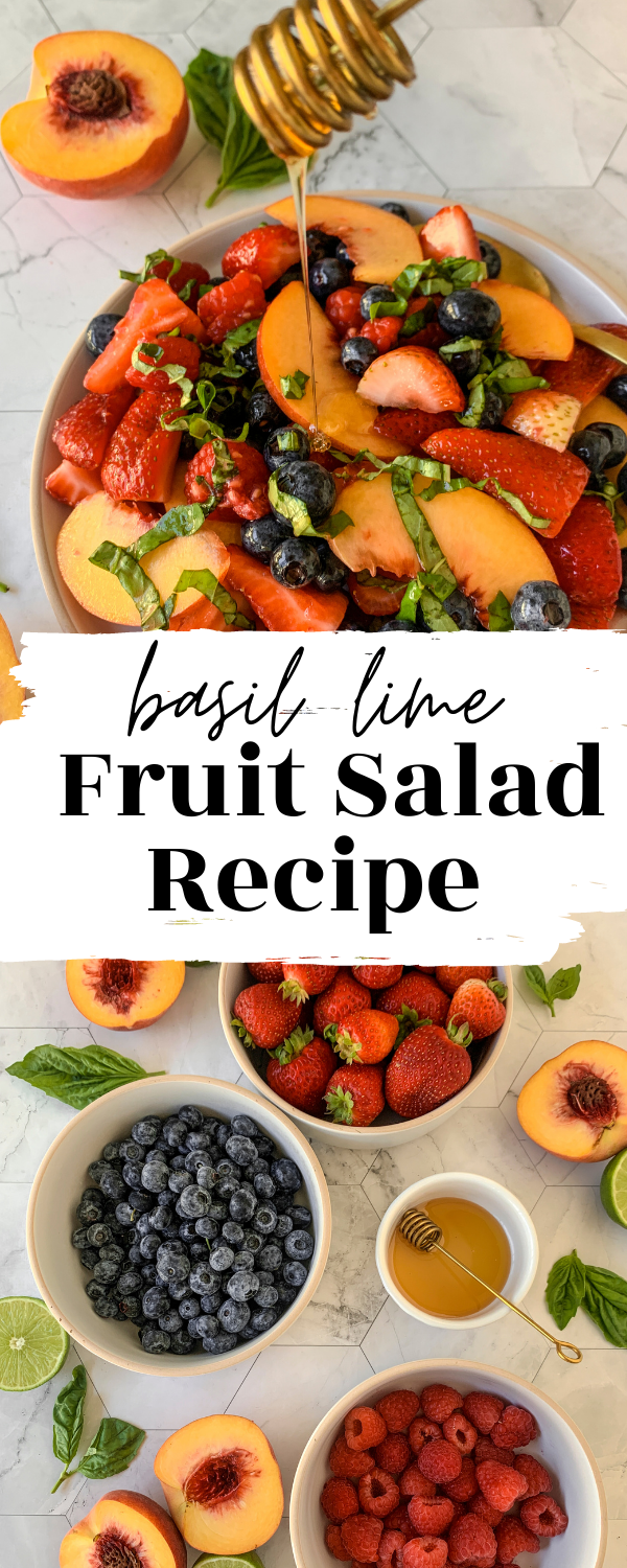 This Basil LimeFruit Salad is the perfect appetizer, snack, or dessert, and my personal favorite way to incorporate a variety of different fruits into the day! It’s much easier to hit my three servings of fruit per day when everything is ready to go, which is why fruit salads are so convenient (not just for cookouts and parties). Not to mention, it takes no time to prepare so you can quickly add it into your meal prep day.