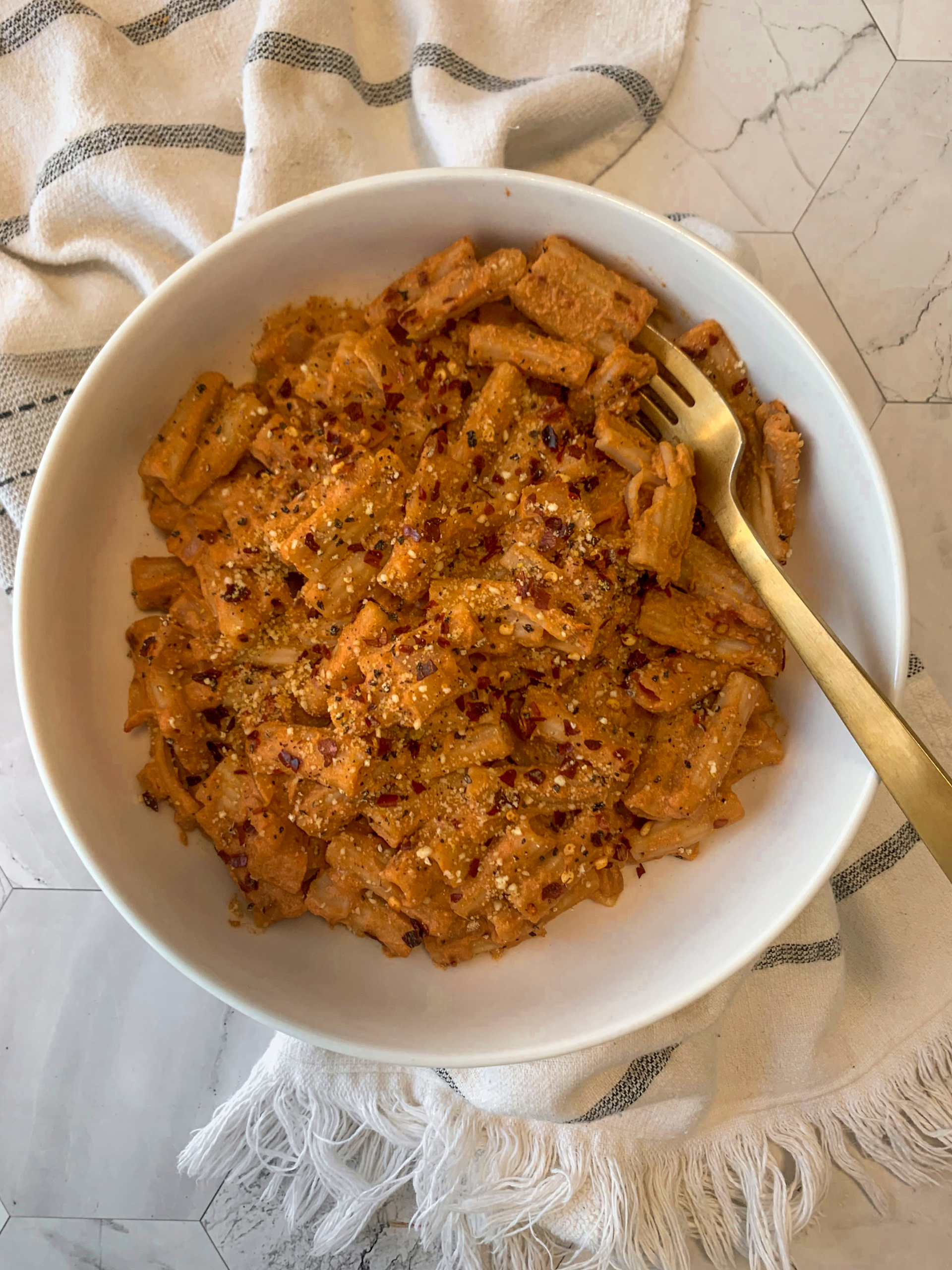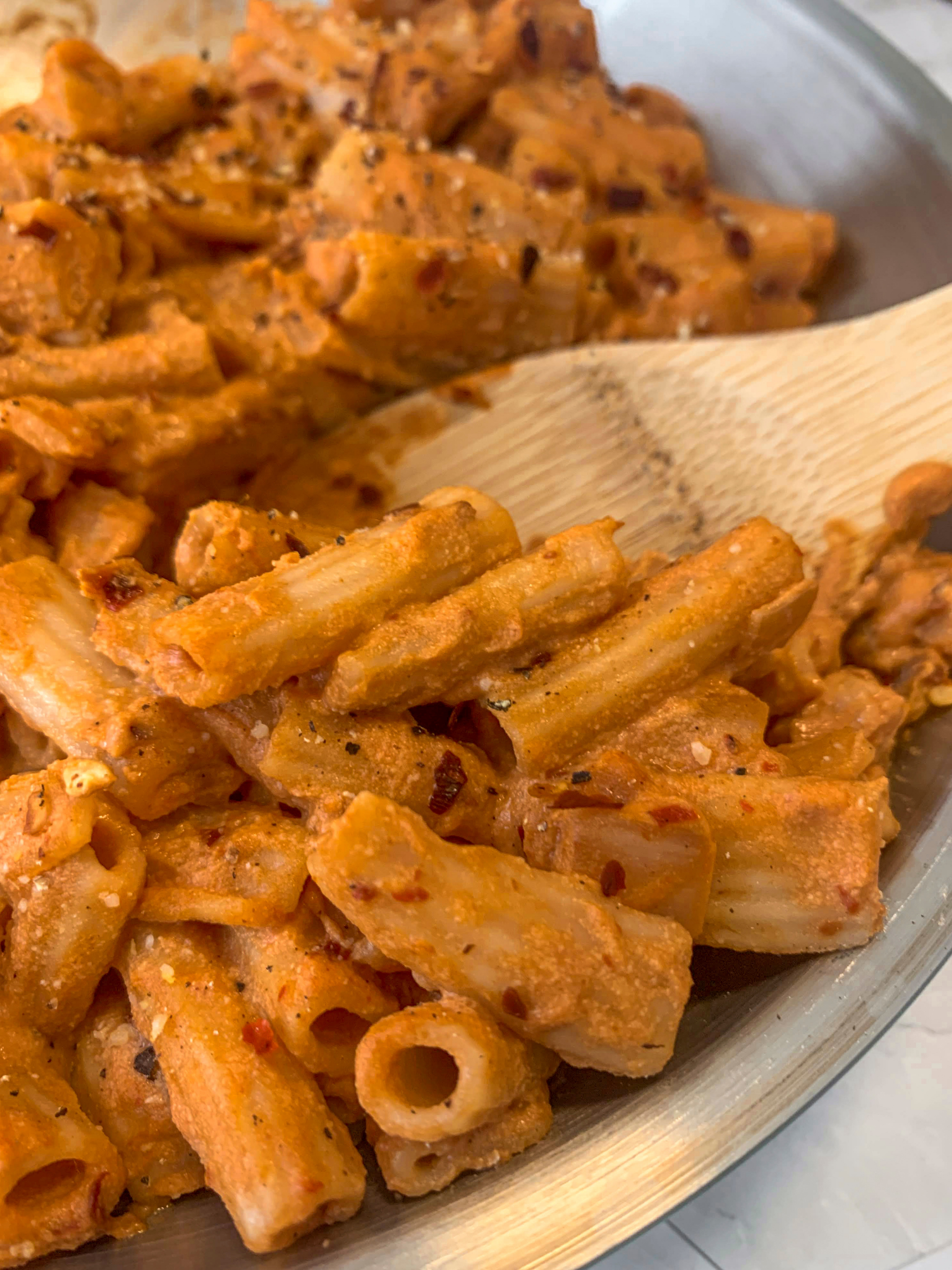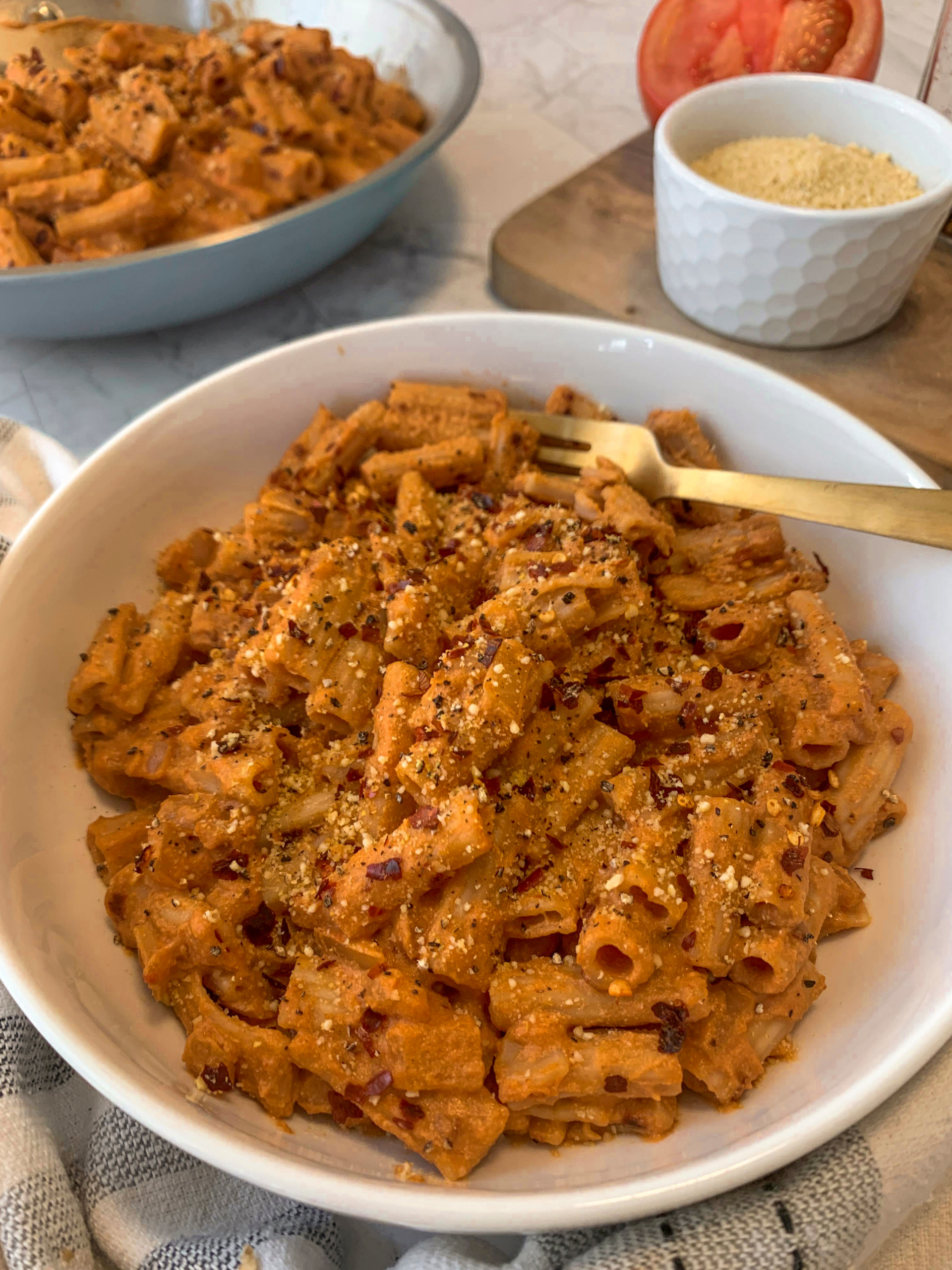 To me, pasta is the ultimate comfort food and this Vegan Spicy Vodka Pasta is so satisfying and easy to prepare! Skip the pre-made pasta sauce and make this healthy, dairy-free recipe instead.