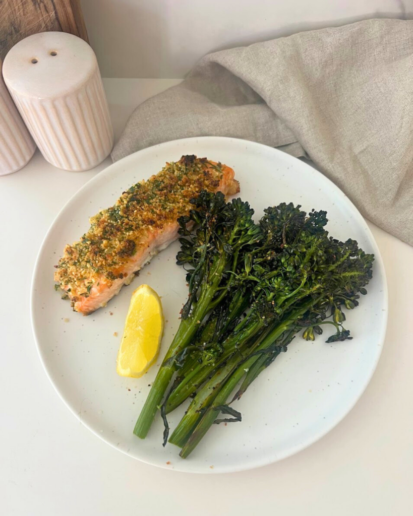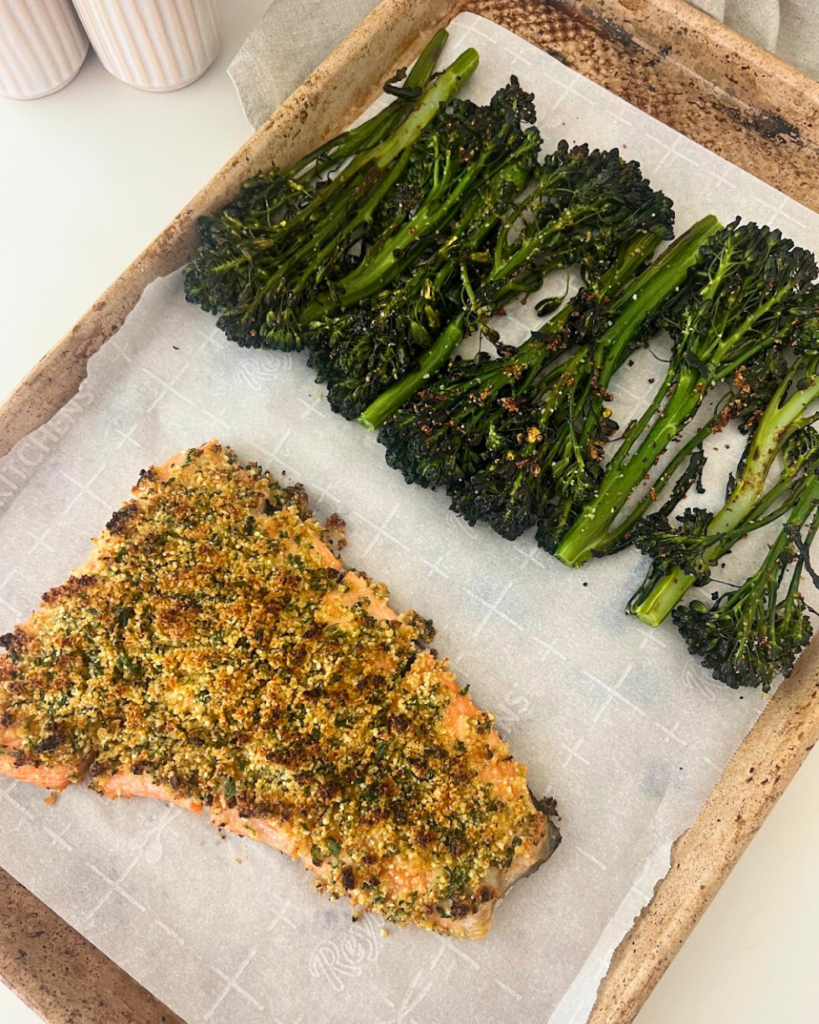 Looking for a new dinner? Try out this delicious Dairy-Free Parmesan Crusted Salmon Dinner – a healthy and easy one-pan dinner that’s perfect for a quick weeknight meal.