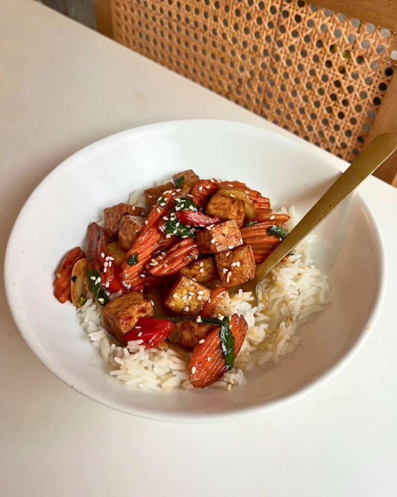 Enjoy a delicious and easy weeknight dinner with this Vegan Teriyaki Tofu recipe. This plant-based dish features crispy tofu, colorful bell peppers, and fresh spinach, all tossed in a homemade teriyaki sauce. Served over jasmine rice, this quick and flavorful air-fryer meal is perfect for a satisfying dinner.