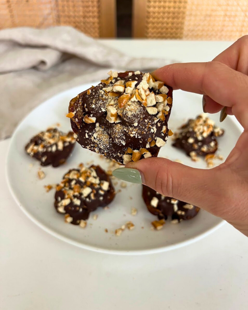 Indulge in a new healthy fall dessert: Caramel Apple Date Clusters. These treats combine the sweetness of dates, the crunch of diced apples, and chocolate drizzle for a fun twist on the classic caramel apple.