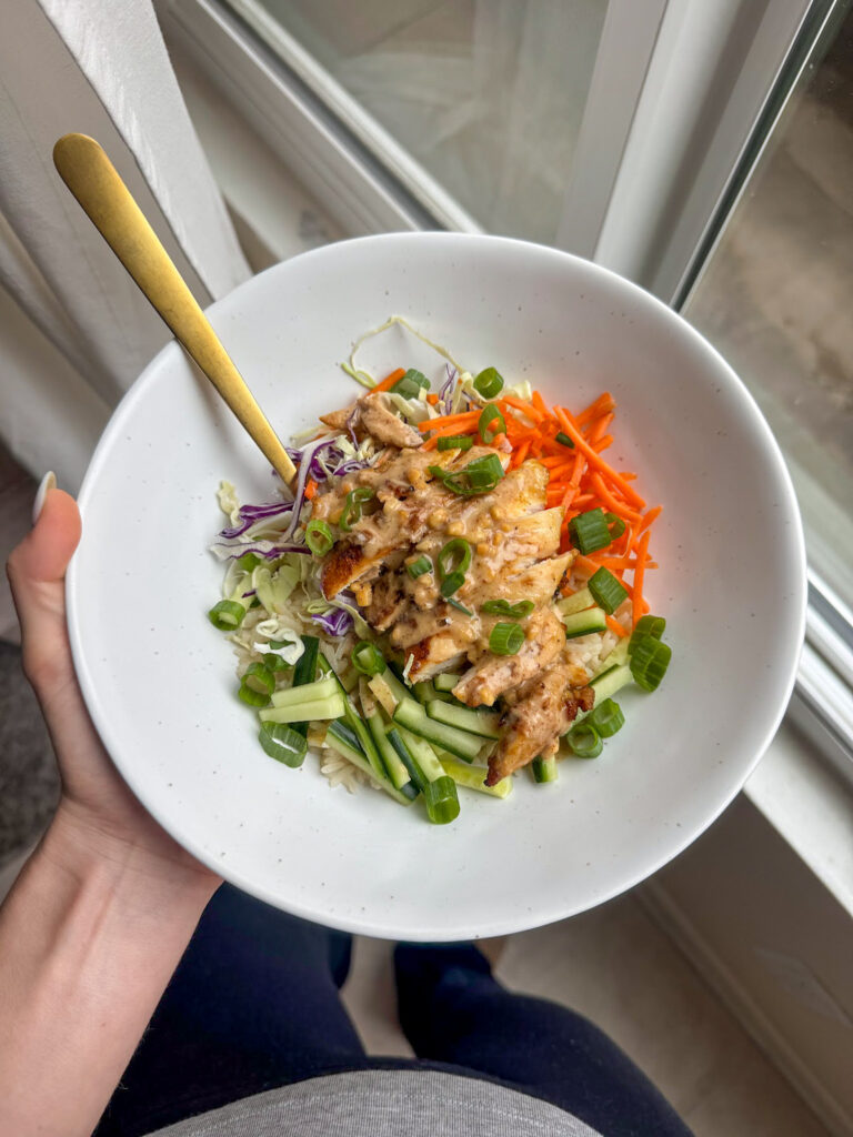 If you’re looking for a flavorful, satisfying weeknight dinner that feels fancy but is secretly simple, these Chicken Satay Bowls are it. The ingredient list might look long at first glance, but don’t let that scare you off! Most of it is made up of pantry staples you probably already have on hand. Juicy marinated chicken thighs, a creamy and tangy satay sauce, and a mix of crunchy veggies over rice make this dish both balanced and crave-worthy. It’s perfect for meal prep, customizable for different tastes, and comes together faster than you’d think. This one’s a guaranteed go-to!